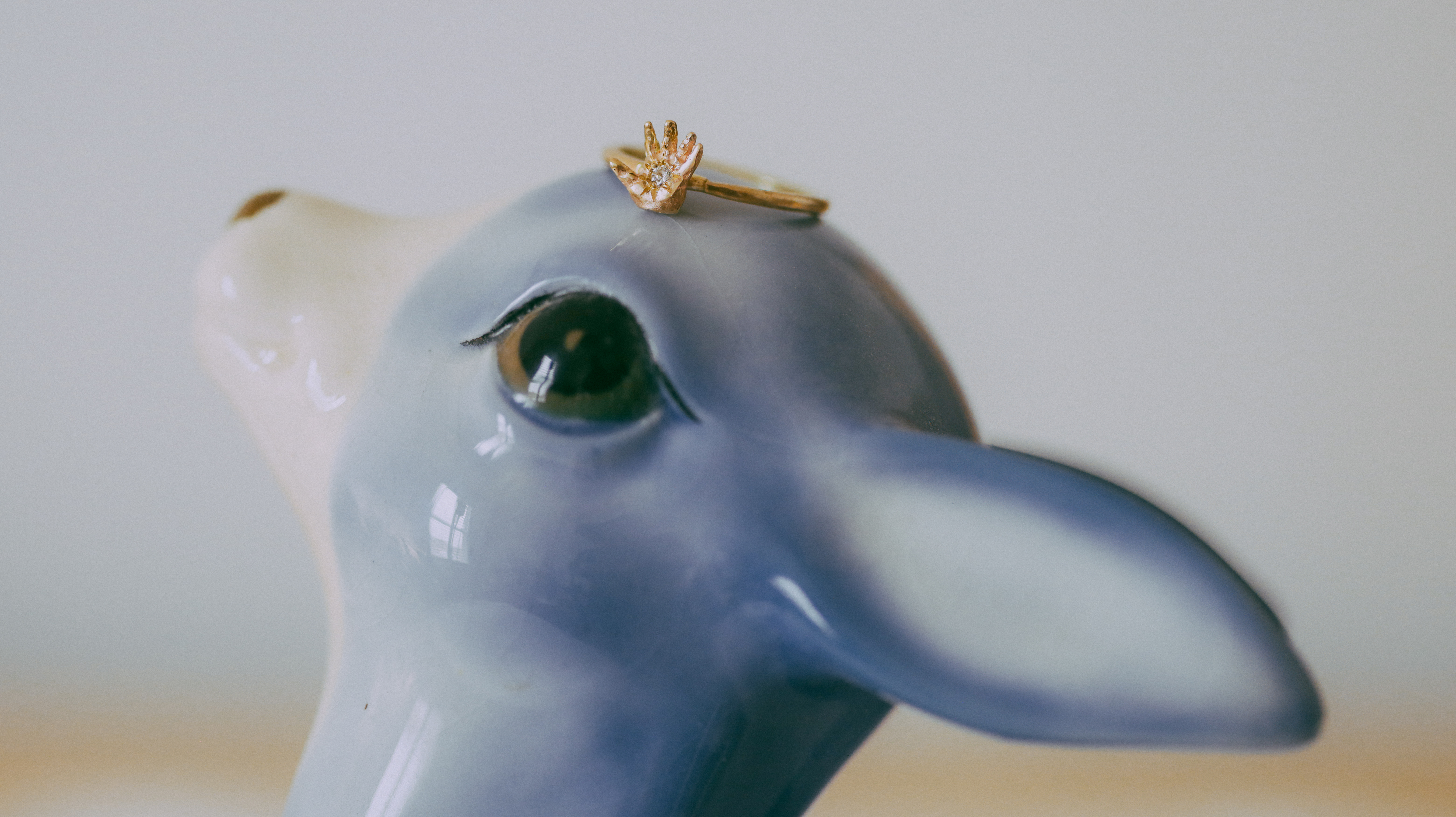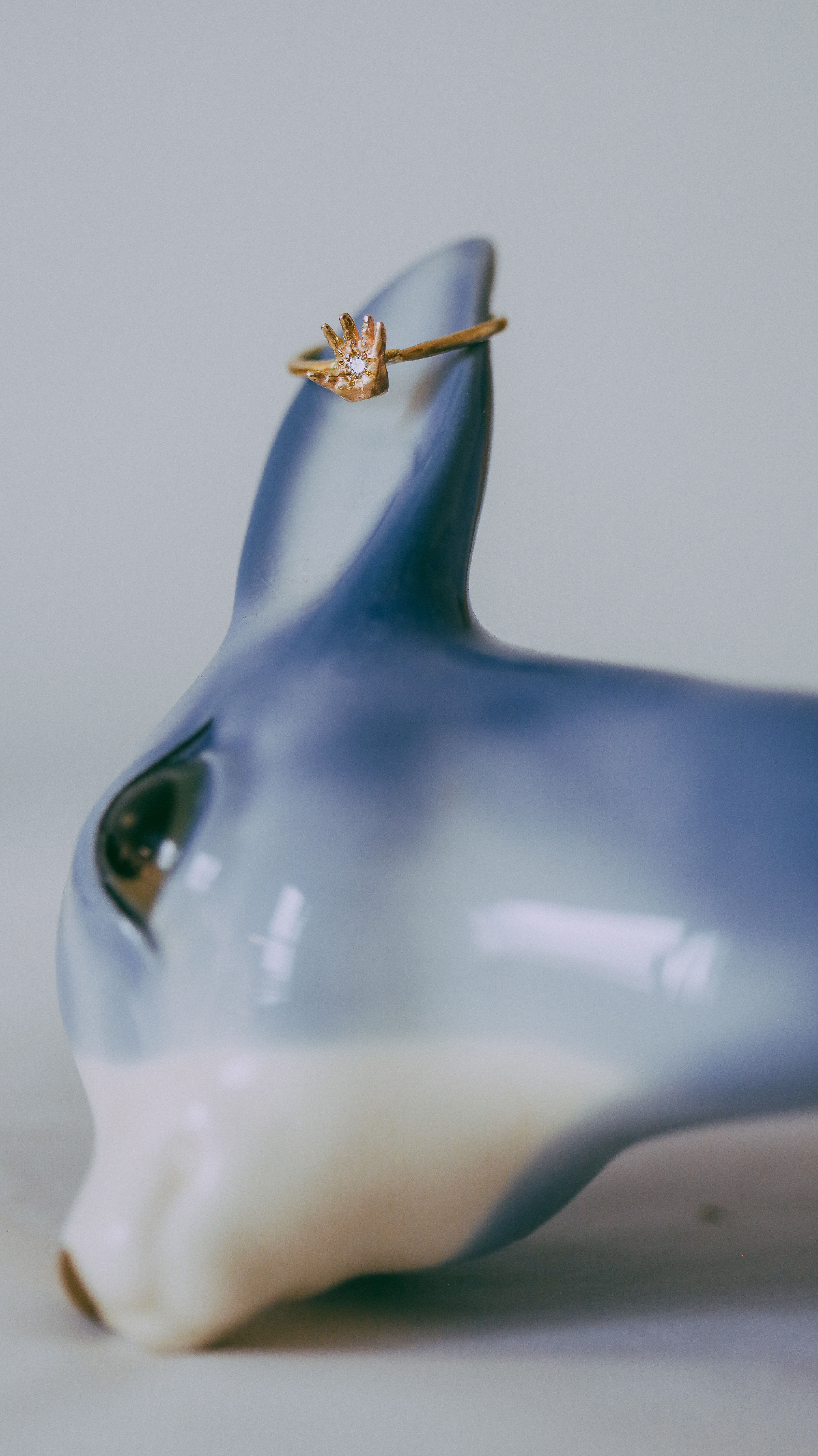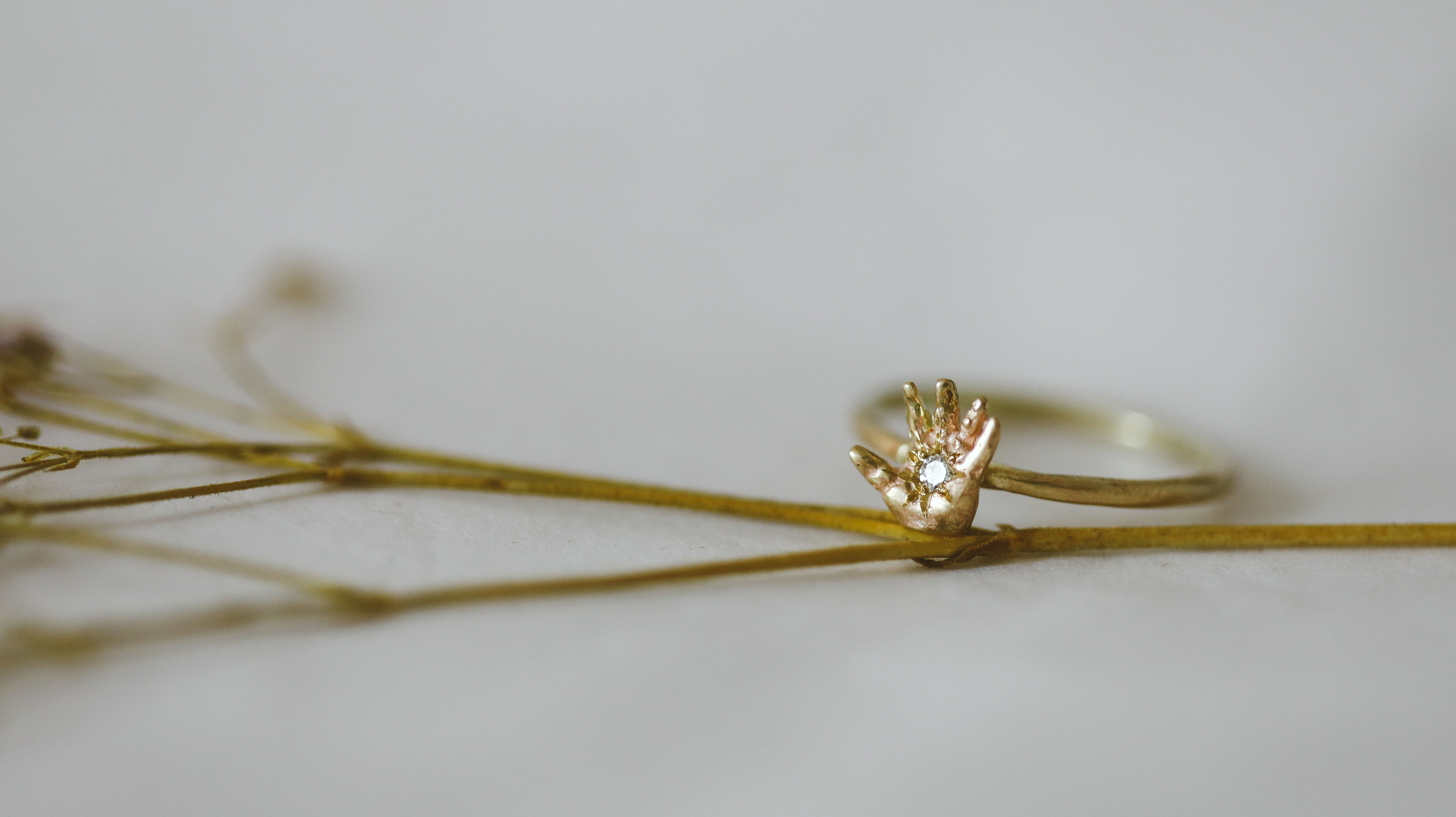 9ct yellow gold hand, stone of your choice (pictured with white diamond)