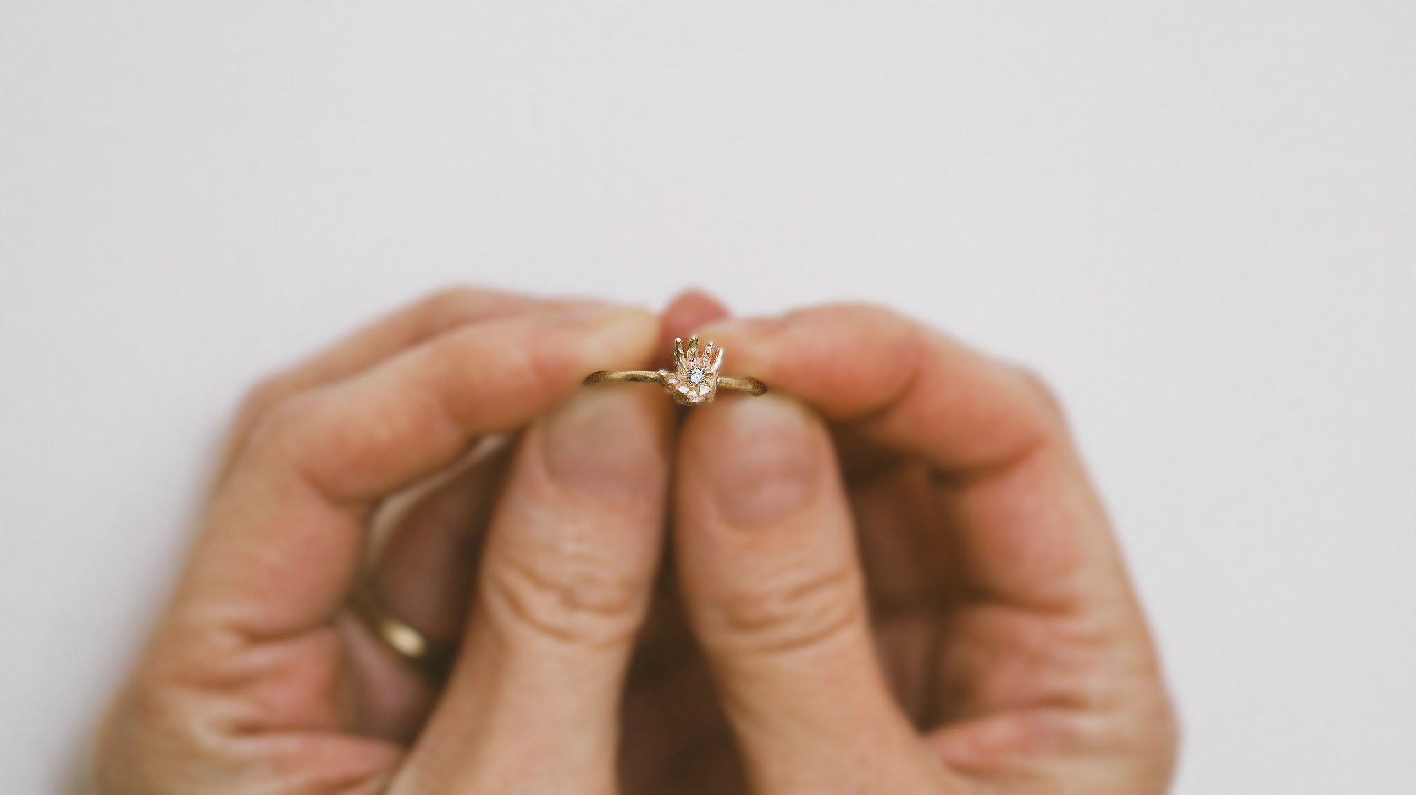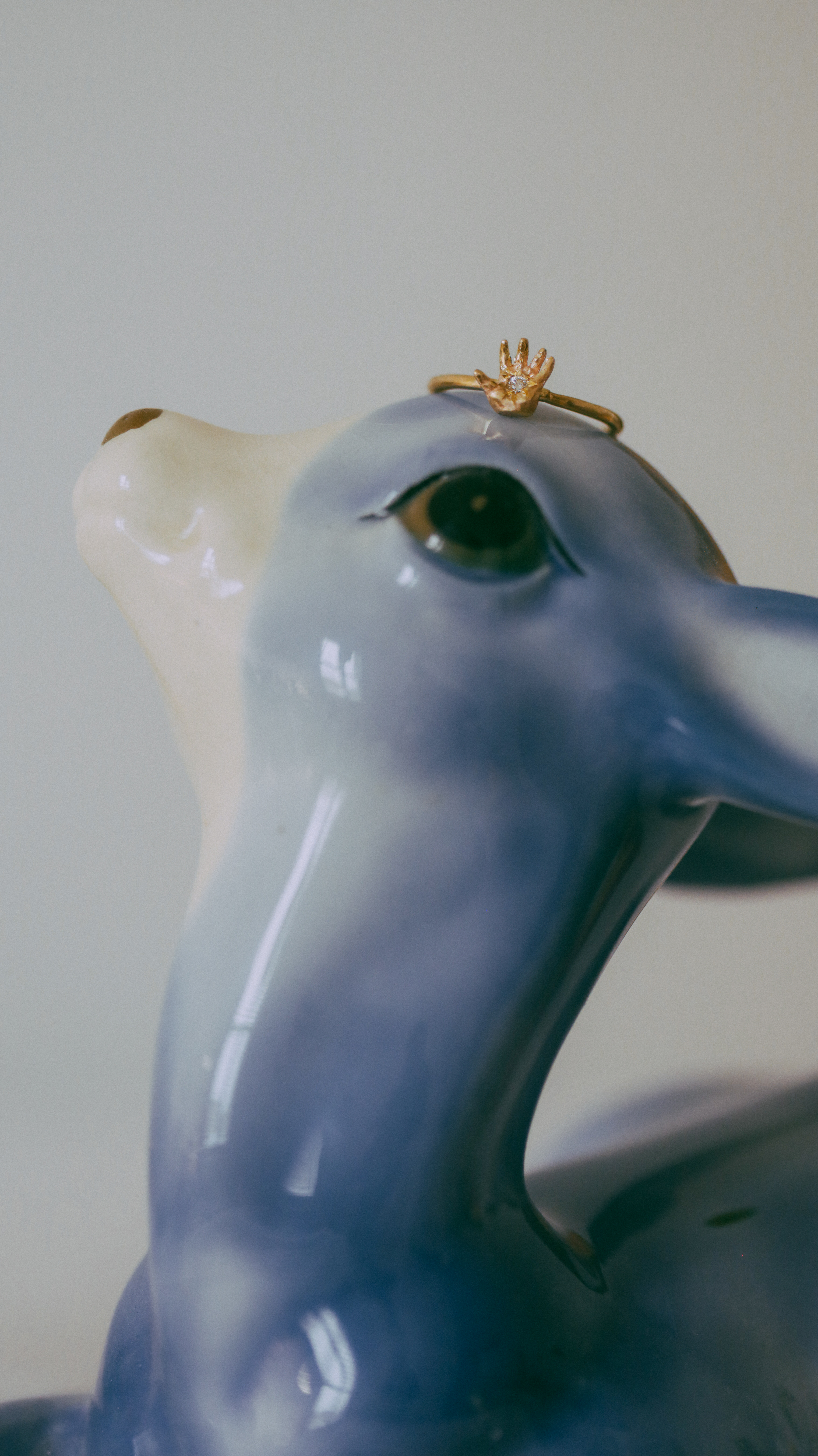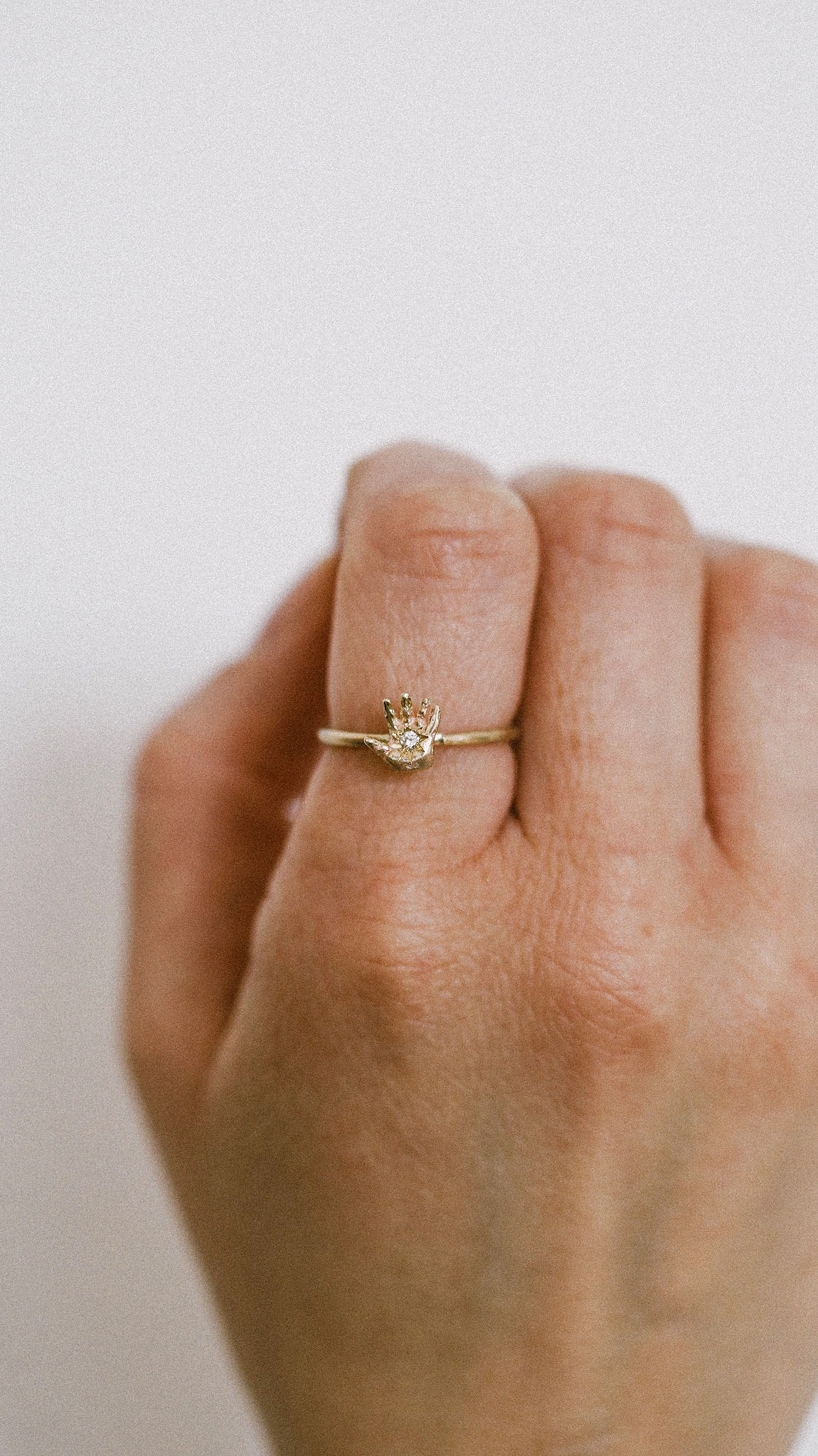 Delicate and deeply meaningful, this 9ct gold ring is inspired by the tiny hand of a newborn — a symbol of new beginnings, unconditional love, and the bond between mother and child. The miniature hand gently cradles a sparkling gemstone of your choice, representing the precious life it celebrates. The stone is set in Gypsy style stone setting finished with a star-like texture around the stone. Symbolizing a new soul’s connection to a celestial guardian star that watches over them, guiding them through life until death, when it becomes a shooting star