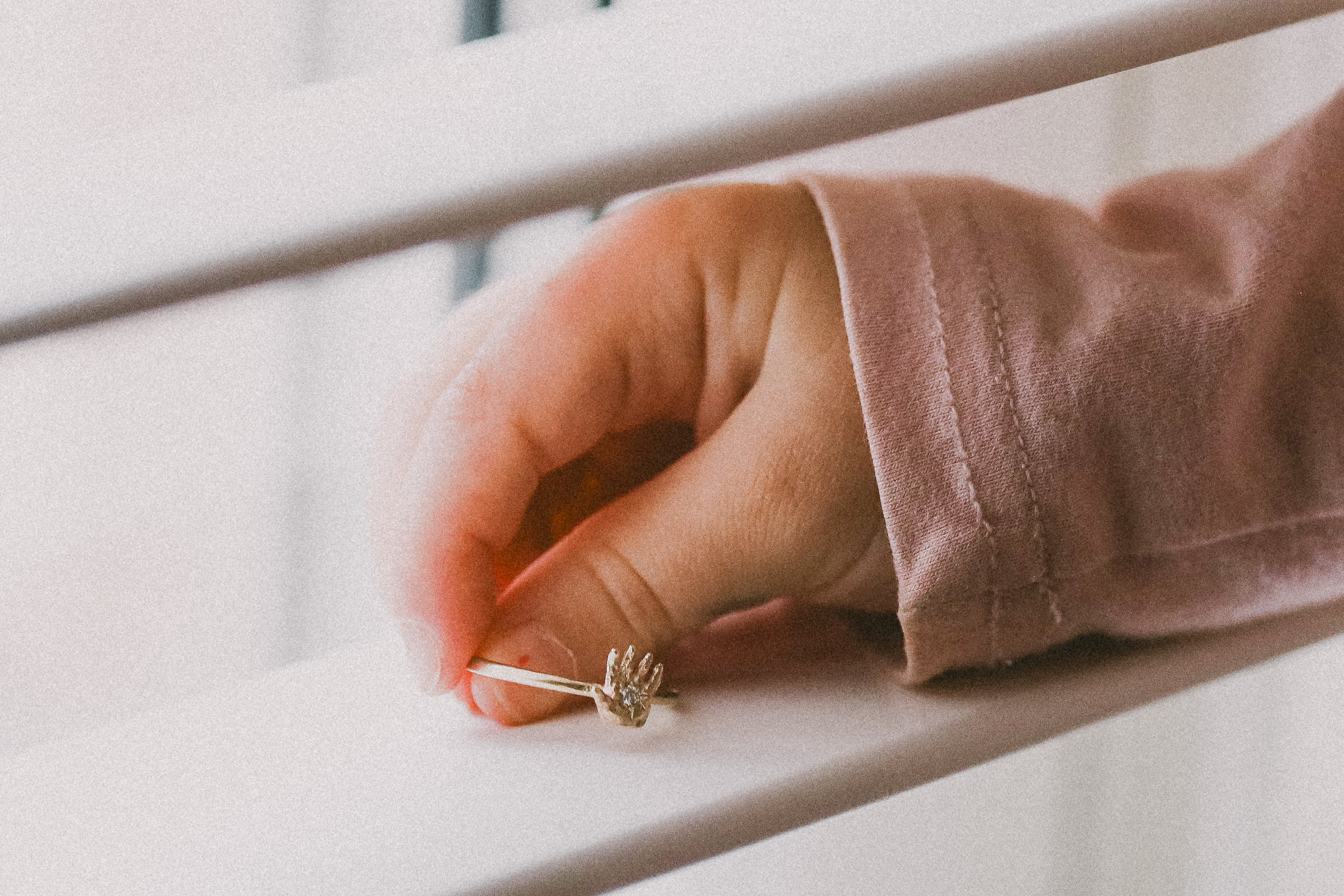 Personalise your ring by choosing a gemstone that corresponds to your child’s birth month, transforming it into a one-of-a-kind heirloom that tells your story. If you have more than one child and you wish each child to have a ring with their own birthstone, it is totally possible. The beauty of this design is that it stacks perfectly with each other and little hands interlocks so well, almost like siblings holding each other hands.