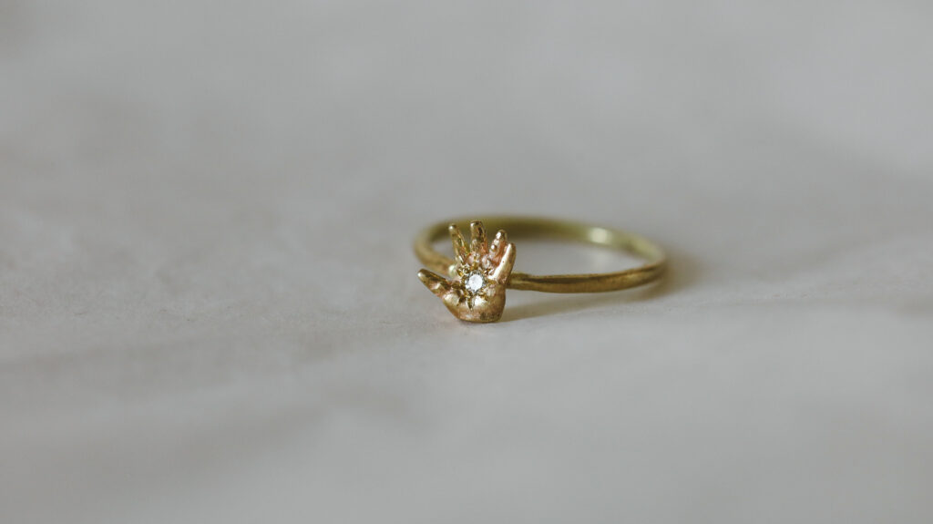 Becoming a mother six years ago transformed me in the best possible way. My children continue to be my greatest source of inspiration, and to honour my firstborn, I created this miniature hand ring and named it Ella —the anglicized form of her name. My hope is that it inspires other mothers, or mothers-to-be, to carry a meaningful symbol of their child with them always.